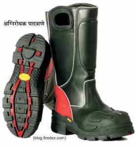 हाताच्या पंजासाठी अग्निरोधक हातमोजे लागतात. तेसुद्धा योग्य मापाचे आणि जलद हालचालीसाठी सोयीस्कर असले पाहिजेत. आणि अग्निरोधक गणवेशातील शेवटचा, पण तितकाच महत्त्वाचा घटक आहे अग्निरोधक पादत्राणे! या बाबतीत बऱ्याचदा दुर्लक्ष होते; कारण आपण आपल्या पायाकडे दुर्लक्ष करतो. पण सुरक्षित पायांशिवाय आगीशी लढणे ही जवळजवळ अशक्य गोष्ट आहे.
