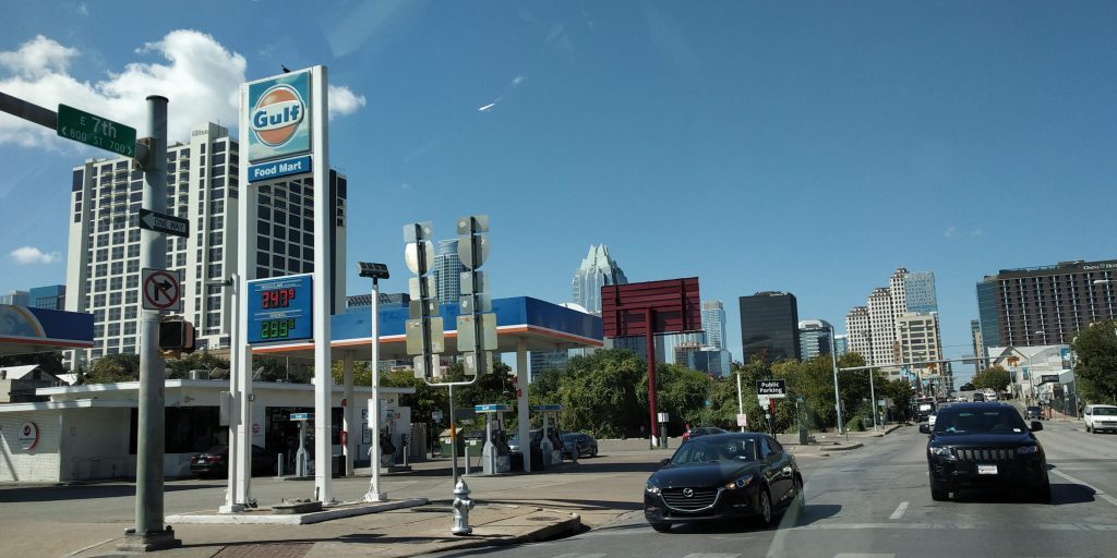 ऑस्टिन हे अमेरिकेतील टेक्सास राज्याची राजधानी. विमानतळा बाहेर, ठरल्या प्रमाणे मुलगा आला होता. विमानतळा बाहेर एका विशाल पार्किंग एरियात गाडी पार्क केलेली. प्रचंड मोठी पार्किंग एरिया होता. किती मोठा ? तर आपलीच गाडी कोठे पार्क केली आहे, हे गिपियस वर पहावे लागले! पार्किंग पासून एअरपोर्ट पर्यंत, येण्यासाठी पार्किंगवाल्यानी मिनीबसची सोया केली होती.