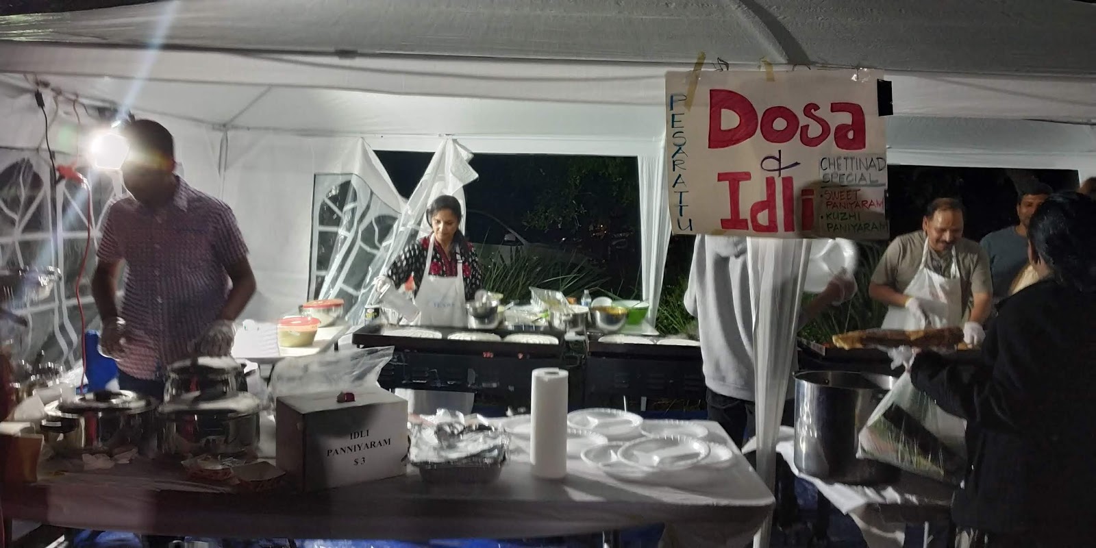 तोवर मुलगा-सून-नाती आम्हाला जॉईन झाले. आम्ही देवदर्शन उरकून फेयरवेलच्या गर्दीत घुसलो. ऑक्टोबरचा शेवटचा आठवडा होता. रात्र थंडीचे पलिते घेऊन घिरट्या घालू लागली होती. हॉलवीन( हा भुतांचा उत्सव्ह ) निमित्याने भरपूर रोषणाई केलेली होती. काही खेळण्यांचे स्टाल होते, काही खाण्याचे! बायको नातींना घेऊन खेळण्याच्या स्टालच्या गर्दीत घुसली. अस्मादिक ‘इडली डोसा’ला लाईनीत उभे राहिले! चारदोन लोक दूर माझा नंबर आला. लोक कागदी चिटोऱ्या देऊन, इडली, डोसा घेत होते! इडलीची ‘तात्काळ’ सेवा होती! डोश्याला मात्र ‘वेटिंग-लिस्ट’! दिसत होती. सोमोरच्या चारातले, दोन इडलीवाले निघाले. समोरच्या दोघांनी हातातील कुपन देवून माझी वाट मोकळी करून दिली. मी खिशात हात घालून शंभर डॉलरची नोट काढून त्या स्टालवाल्याला दाखवली! काय करणार दुसरे?