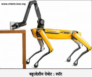 जगात अग्रक्रमांकावर असलेल्या ‘बॉस्टन डायनॅमिक्स’ कंपनीने रोबोटिक्समधील आव्हानात्मक प्रश्न सोडवण्यासाठी अनेक भ्रमण-यंत्रमानव (मोबाइल रोबोट) निर्माण केले आहेत. ‘स्पॉट’ नावाच्या त्यांच्या चार पायांच्या यंत्रमानवाचे कार्य कृत्रिम बुद्धिमत्तेच्या साहाय्याने चालते, म्हणजे त्याच्यात कृत्रिम बुद्धिमत्ता निर्माण केली आहे. तो चपळाईने पायऱ्यांची चढ-उतार करू शकतो, वाटेतला भाग खडबडीत किंवा गवताळ असला तरी ओलांडून पार करू शकतो. त्यासाठी त्याच्या पायांची रचना निमुळती केली आहे. त्याबरोबरच तो चलाख आणि चाणाक्षही आहे.