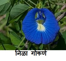 टीप: निळी गोकर्ण हे आयुर्वेदिक डॉक्टरांच्या सल्ल्यानेच वापरावे. आपल्याकडे देवपूजेसाठी निळ्या-जांभळ्या फुलांचा वापर केला जातो.
