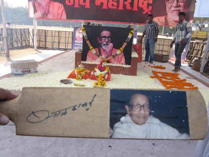 मी पण वरच्या मजल्यावर स्टेडियम मध्ये गेलो… तास-दीड तासानंतर खाली गर्दी हलताना दिसली… मी समजलो बाळासाहेब निघाले असणार… तसाच धडपडत खाली आलो… परंतु बाळासाहेब गाडीत बसले होते.. गाडी सुरु झाली होतो मी धावत जाऊन गाडीच्या पुढे गेलो आणि एका झाडाच्या उंचवट्यावर उभे राहून बॅट दाखवली… बाळासाहेबानी गाडी थांबवयाला सागितले…