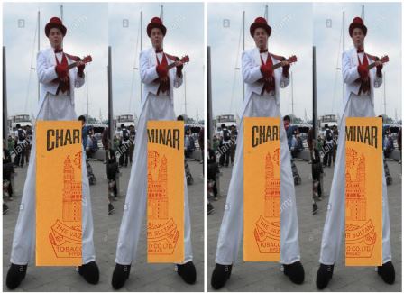 मी भीतीयुक्त आश्चर्याने आणि औत्सुक्याने घरातल्या माणसांना हाक मारून बाहेर बोलावले! ती माणस अधिक जवळ आल्यानंतर खाली डोकावून पाहिल्यानंतर लक्ष्यात आले कि ‘चार मिनार’ सिगरेटची जाहिरात करणारी उंचच उंच काठ्यांवरून चालणारी सामान्य माणसेच आहेत ही. पण माझ्या मनाच्या कोपऱ्यात ती अद्भुत अशी चौकडी म्हणून अजूनही ‘ठाण’ मांडून बसली आहेत.