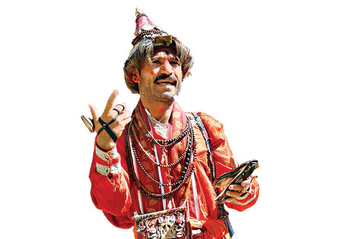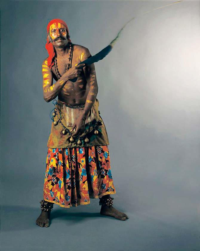 केस वाढवलेला, उघडा, कपाळावर मोठं लालभडक कुंकू, गळ्यात आणि दंडावर, ‘कवड्यांच्या माळा’ घातलेला ! बरोबरच्या ‘स्त्रीच्या’ डोक्क्यावर’ ‘देवळासदृश’ तसबीर’ वगैरे, वगैरे. हातातला ‘पिळदार आसूड’, तो गरगर फिरवीत , जोरात जोरात आवाज करीत, अंगावर आसुडाचे फटके मारीत घेत गोल आकारात फिरायचा .