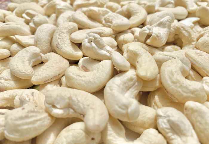 त्याचप्रमाणे यात मँगनीज, पोटॅशियम, लोह, तांबे, मॅग्नेशियम, जस्त आणि सेलेनिथम सारखे खालील द्रव्ये भरपूर प्रमाणात असतात. काजूच्या बिया खाण्यात फारच गोड असतात. त्यात खारावलेले काजू हे पार्टी, समारंभ वगैरेसाठी सर्रास वापरतात. काजू निरनिराळ्या प्रकारचे असतात. यात काही फारच लहान, काही मोठे तर काही बरेच मोठे असतात. याची किंमत दर्जावरून ठरते. काजू तुटले तर अशा काजूची पाकिटेही बाजारात मिळतात. शेव, चिवडा तसेच मसाले भात, बिर्याणी व उपमा वगैरे काजूचा वापर करता येतो. यात लोकांना सर्वात मोठा फायदा म्हणजे काजू कोलेस्ट्रेरॉल शून्य असतात.