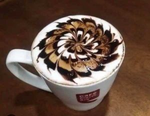 समोर आला एक मोठा कप .. मग सारखाच.. बशी नसलेला .. आणि त्या कपात एक सुंदर डिझाईन.. ते न मोडतां कसे बरे कॅाफी प्यायले असे वाटले..पण तिथली कॅाफीही डिझाईन सोडले तर आपल्या जवळच्या चवीची वाटली.