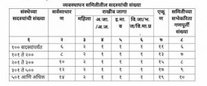 टीप: समितीतील सदस्यांची संख्या आणि सभा घेण्यासाठी आवश्यक गणपूर्ती (कोरम) खालीलप्रमाणे आवश्यक राहील.