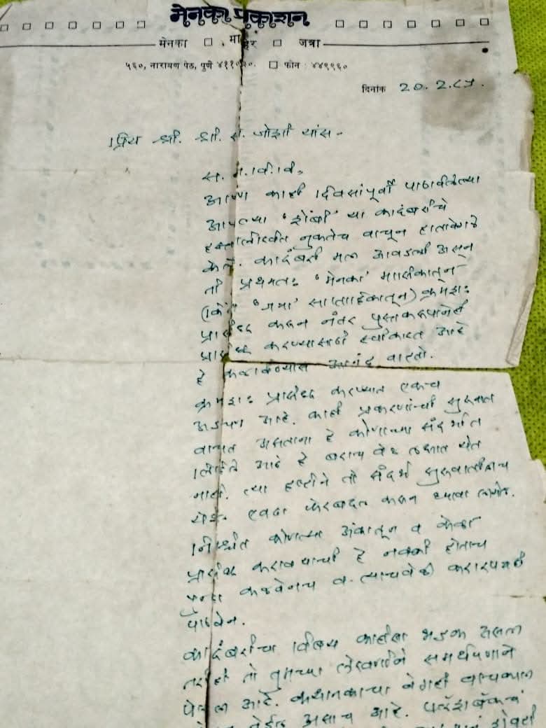 आता मला वाटलं ,ज्या अर्थी संपादक पुन्हा पुन्हा सांगताहेत त्या अर्थी मला अतिशय काळजीपूर्वक लेखन करायला हवं .मी तसं ते केलं . आणि अहो आश्चर्यम त्यांचं स्वीकृतीचं पत्र आलं.