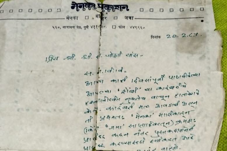 पण पुस्तक प्रकाशित झालं नव्हतं . तो योग , वयाच्या सत्ताविसाव्या वर्षी आला होता . पुण्यासारख्या ठिकाणाहून प्रसिद्ध होणारं मेनका मासिक सर्वदूर जात होतं. त्याचा वाचकवर्ग खूप होता. सर्क्युलेशन खूप होतं. संपादक असणारे पु . वि .तथा राजाभाऊ बेहेरे अतिशय चिकित्सक आणि आपल्या मासिकातून प्रसिद्ध होणारा प्रत्येक शब्द तोलून मापून घेणारे ,म्हणून प्रसिद्ध होते. त्यांनी माझं मूल्यमापन केलं होतं आणि मगच माझी पहिलीवहिली कादंबरी स्वीकारली होती . क्रमश: प्रसिद्धी , मग पुस्तक , त्याचं योग्य ते करारपत्र, नियमित मिळणारं मानधन आणि मला मिळालेला वाचकवर्ग , त्यामुळं झालेली खूप प्रसिद्धी . लेखक होणाऱ्याला , वयाच्या सत्ताविसाव्या वर्षी आणखी काय हवं होतं ?