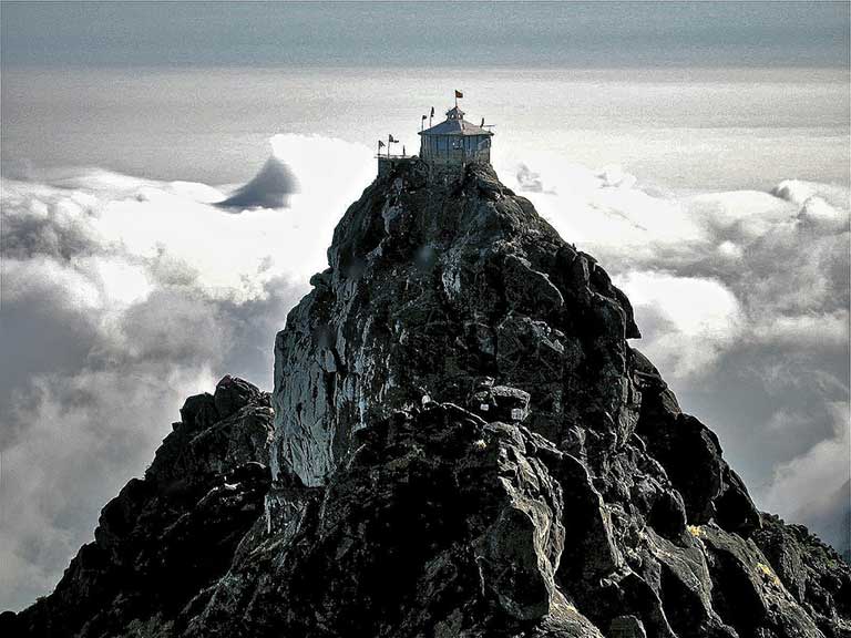 आम्ही सृष्टी सौंदर्य दर्शन आटोपते घेतले आणि उतरायला सुरुवात केली. गुरुशिखराच्या शेवटच्या काही पायऱ्या खूपच अरुंद होत्या आणि जवळ जवळ होत्या.त्यामुळे माझ्या चप्पल घसरायला लागल्या. शेवटी मी काही पायऱ्या चपला सरळ हातात घेऊन उतरले.