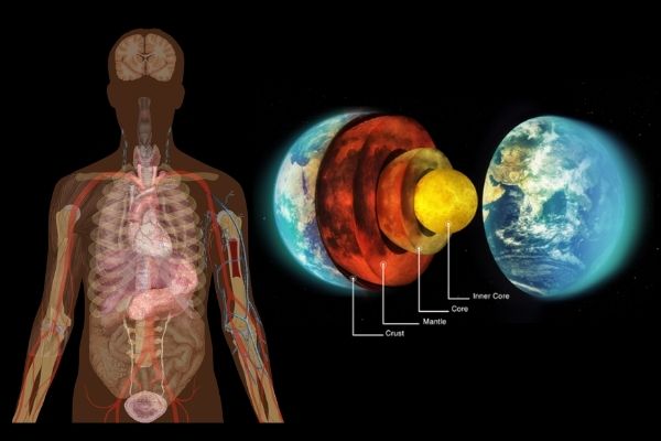 देहाबाहेरील नैसर्गिक रचनाचे ह्या सर्व आतल्या आवयाचे विलक्ष साम्य असल्याचे जाणवले. पर्वत, नद्या, जंगले, तलाव, प्राण्यांची हलचाल हा जसा बाहेरचा देखावा दिसतो, आगदी तसाच रचनात्मक पद्धतीने शरीराच्या आंत दिसला. वेगळेपणा जो भासत होता तो केवळ बघण्याच्या दृष्टीकोणामुळे. दोन्हीमध्ये जसे सौंदर्य होते, तसेच भयानकता देखील जाणवत होती. वाहीन्यामधून वाहणारे द्रव, रक्त, सारे शरीरभर वाहत होते. अवयवांत जमा होत होते.
