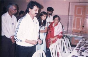 काही वर्षापूर्वी माझा कार्यक्रम आणि स्वाक्षरी प्रदर्शन पार्ल्यातील ‘ मॅजेस्टिक गप्पा ‘ मध्ये होते तेव्हा त्यांनी माझ्या स्वाक्षरीच्या प्रदर्शनाला भेट दिली होती.