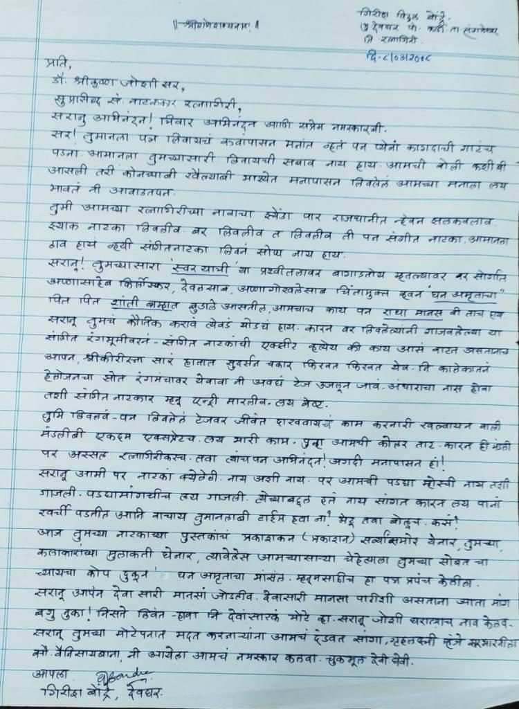 यापेक्षा महत्वाचं म्हणजे ते पत्र चक्क संगमेश्वरी बोलीतील होतं .