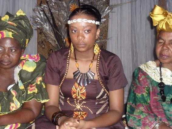 प्राचीन कालरूढीप्रमाणे वाग्दत्त वधूला दिवाणखान्यात आणतात. आफ्रिकन लग्नकार्यात वधू-हुंडा विरोध मंडळीना फारसा वाव नाही. कारण मुलाने मुलीला हुंडा द्यायचा. बाकीचे संकेत आपल्यासारखेच. हुंड्याची रक्कम मुलीच्या शिक्षणावर अवलंबून. शिकलेल्या सुनेला लठ्ठ हुंडा द्यावा लागतो. विवाह समारंभासाठी नटविण्याचे काम आईच्या माहेरकरांचे- म्हणजे मावशांचे. वधूच्या कपड्याचे रंग संकेताप्रमाणे ठरलेले. म्हणजे जसे आपल्याकडे मामाच्या साडीचा रंग पिवळाच पाहिजे-तसे. वेषभूषेत पोलके, चेहर्याचा पदर किंवा पडदा आणि मस्तकावर हॅट. मेजवानीचा चमचमीत बेत असतो-तांबड्या रंगाच्या खोबरेल तेळात तळलेले मास. डुकराचे मांस. मद्यपानासाठी आफ्रिकन व्हिस्की व माडावरच्या ताडीपासून केलेली बिअर. मद्याचे सोवळे असणाऱ्यांसाठी उसाचा रस.