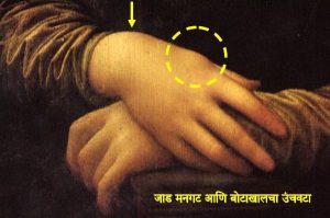एखाद्या चित्रातील तपशिलावरून, त्याबद्दल वेगवेगळे निष्कर्ष काढणं, अनेक वेळा शक्य होतं. लिओनार्दोच्या या चित्रात मोना लिसानं डोक्यावरून तलम अशा पातळ कापडाचा पदर घेतला आहे. हे चित्र काढलं गेलं त्या काळातल्या बाळंतपणात, डोक्यावरून तलम