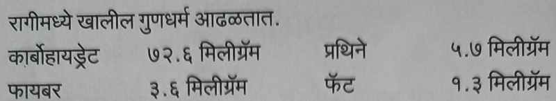 १०० ग्रॅम रागीमध्ये गुणधर्म आढळतात.