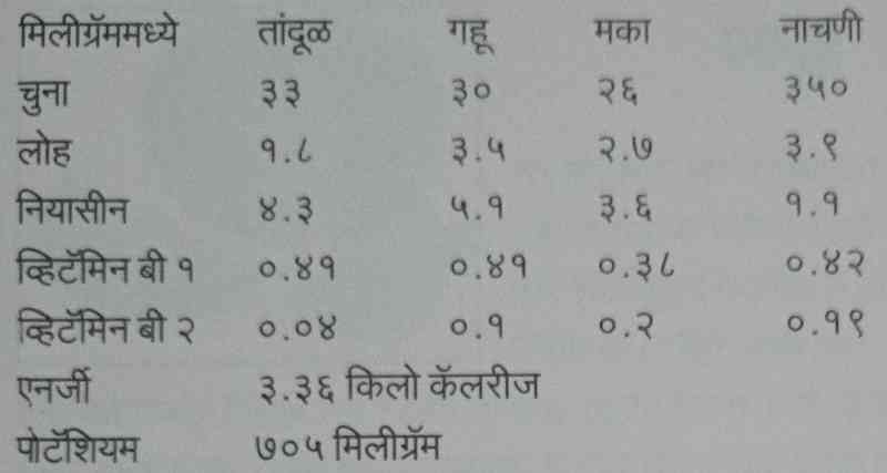 याचा अर्थ नाचणीमध्ये कॅल्शियम भरपूर असते. तसेच लोहही भरपूर प्रमाणात असते. भाकरी व्यतिरिक्त नाचणी कशाप्रकारे खाता येते, याचेही संशोधन झाले आहे. भारतातही अनेक प्रकारचे नाचणीचे खाद्यपदार्थ आहेत.