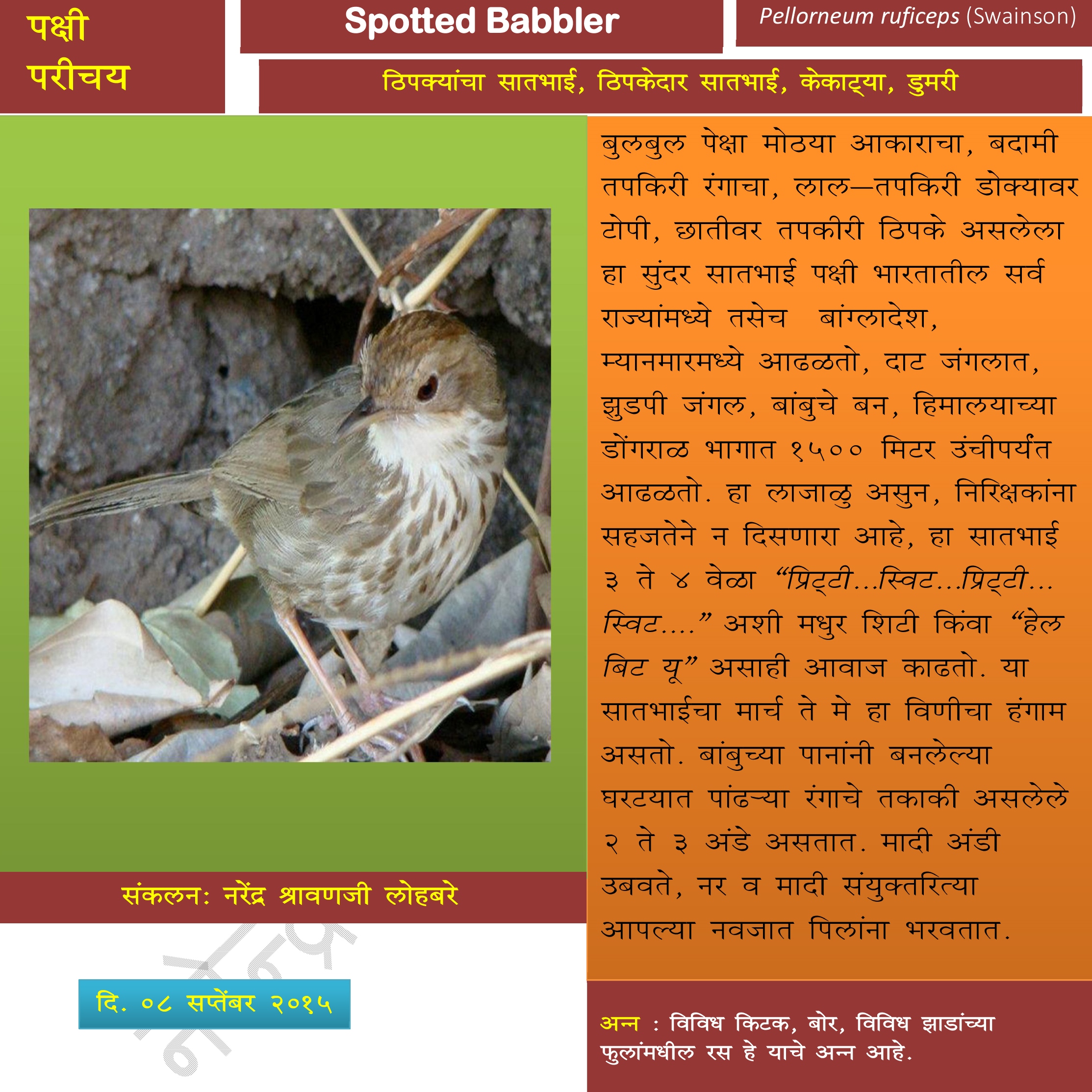 पक्षीपरिचय २५ नरेंद्र श्रावणजी लोहबरे उर्फ नरेश Save to Read Later Author sachingadkarisachingadkari नरेंद्र श्रावणजी लोहबरे उर्फ नरेश