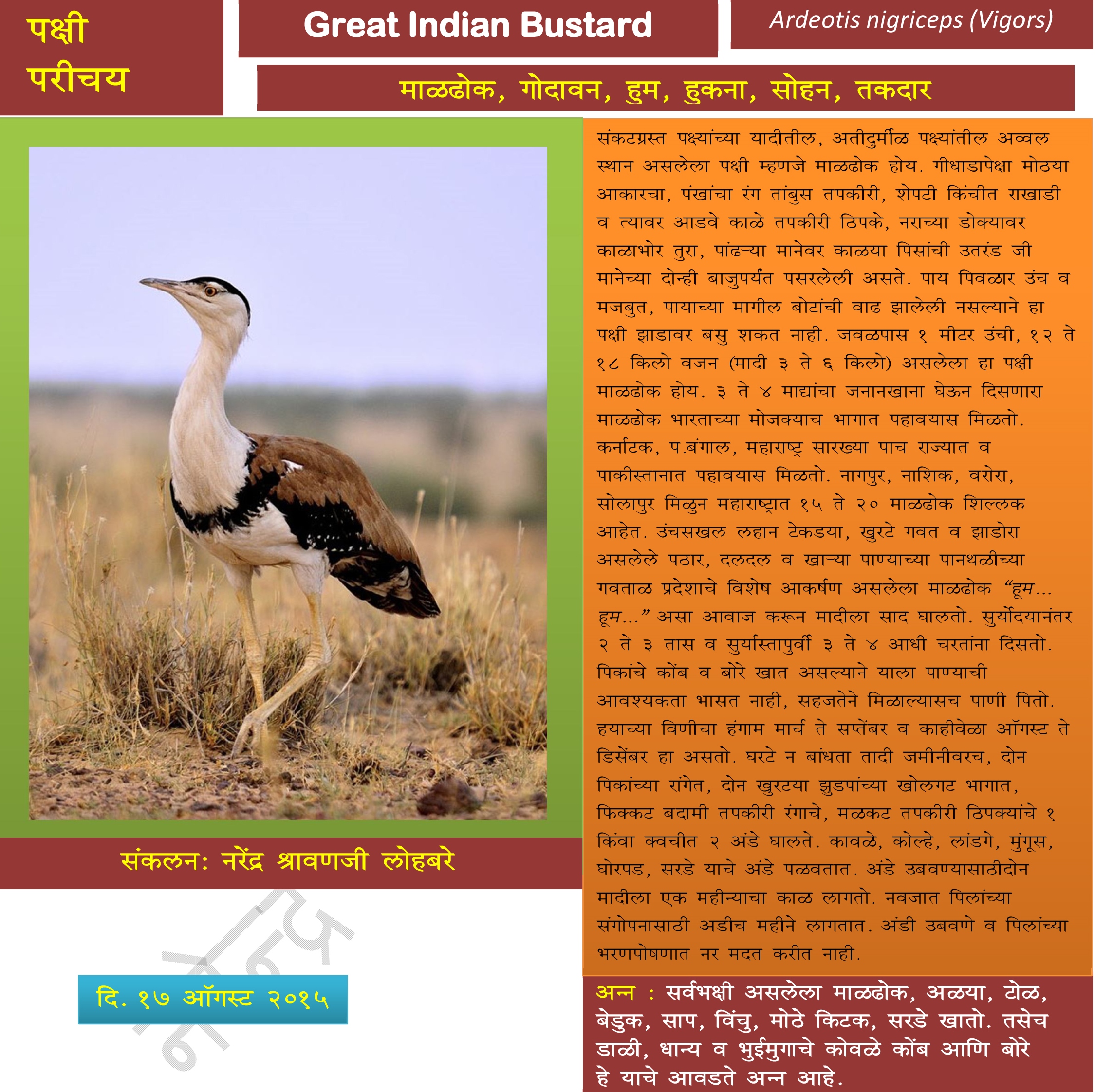 पक्षीपरीचय ३ नरेंद्र श्रावणजी लोहबरे उर्फ नरेश Save to Read Later Author sachingadkarisachingadkari नरेंद्र श्रावणजी लोहबरे उर्फ नरेश
