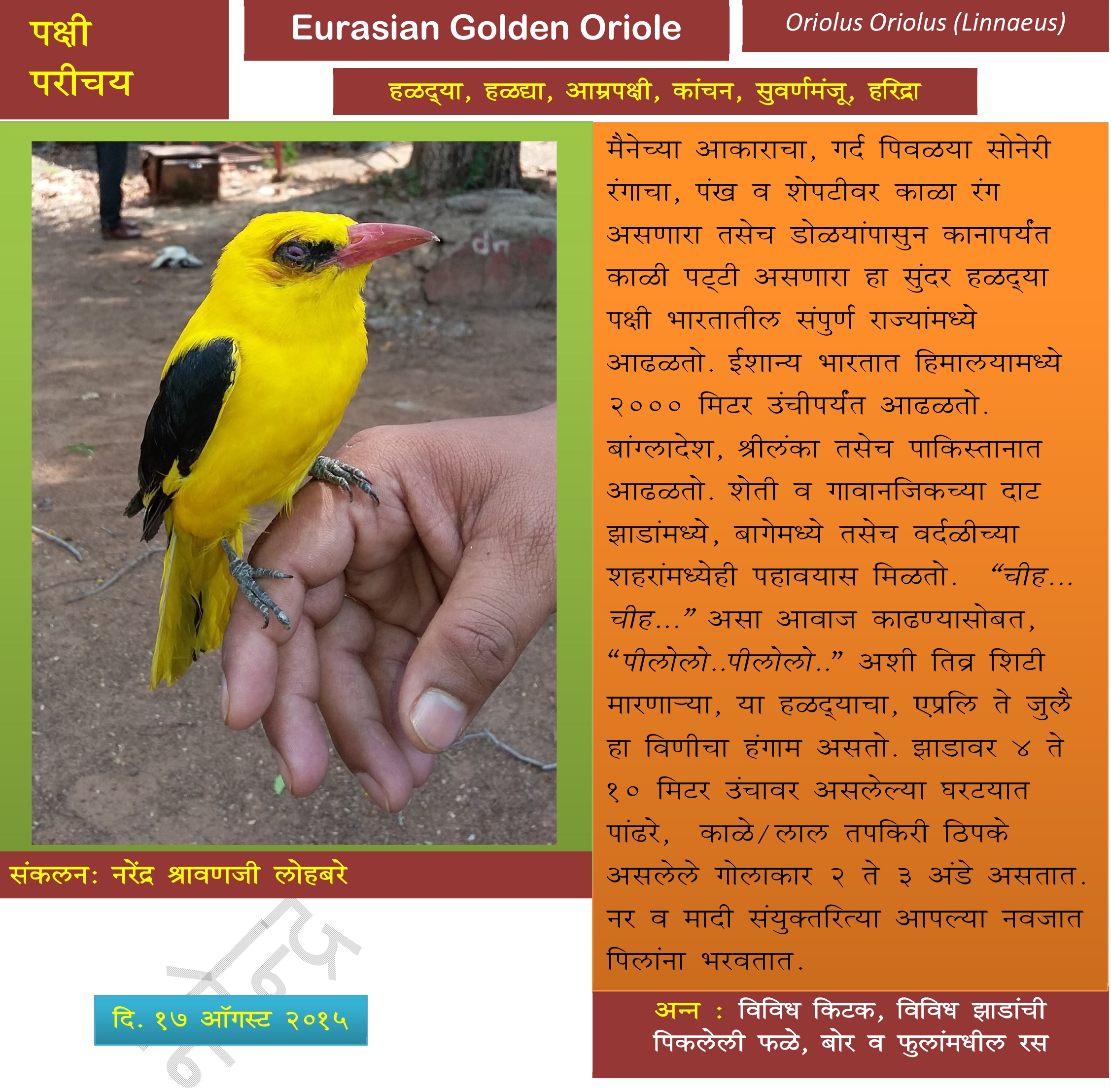 पक्षीपरीचय ४ नरेंद्र श्रावणजी लोहबरे उर्फ नरेश Save to Read Later Author sachingadkarisachingadkari नरेंद्र श्रावणजी लोहबरे उर्फ नरेश