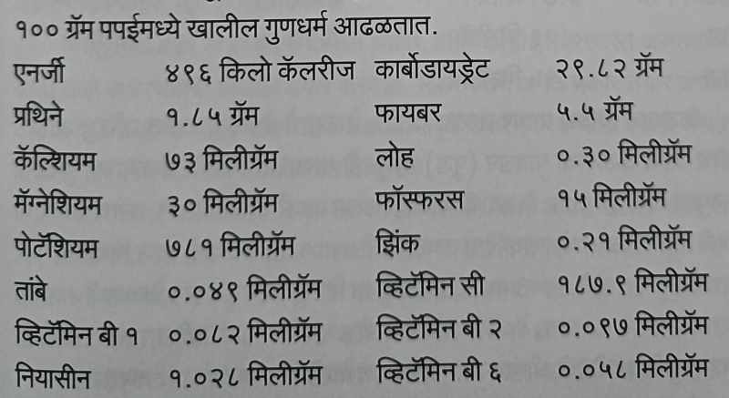 एक अत्यंत पौष्टिक तसेच असणारी जीवनावश्यक गोष्ट म्हणजे पपई. पपईत काय नाही? पपईचे अनेक फायदे असतात. तसे पाहिले तर १६व्या शतकात मलाया या देशातून भारतात पपईचे फळ आहे. तसेच महाराष्ट्र, मध्य प्रदेश, आसाम, उत्तर प्रदेश पश्चिम बंगाल वगैरे या राज्यात प्रामुख्याने पपईची लागवड होते. इतर राज्याच्या तुलनेत महाराष्ट्राचा उत्पादनाचा बाबतीत आठवा क्रमांक लागतो.