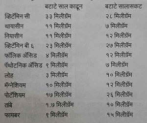 आपले हे पृथ्थकरण वापरले तर यात दोन प्रकार येतात. बटाटे कच्चे व बिन सालीचे व फक्त उकडलेले बटाटे. नवीन संशोधनात बटाट्याचा सालींमध्येही अनेक चांगले गुणधर्म असतात, असे आढळले. म्हणूनच बटाटे भाजी करताना ते सालासकट खाणे चांगले असते.