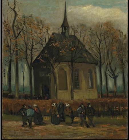 १८८४ मध्ये, अशीच एक घटना घडली. व्हॅन गॉगच्या आईच्या मांडीचे हाड मोडले. त्याची बहीण ‘विल’, तिच्याबरोबर त्याने आईची अगदी मनापासून सेवा केली. त्यावेळी गावात नवीन सुधारित बांधलेल्या न्यूएनएन चर्चचे चित्र त्याने आईला भेट म्हणून दिले.