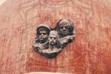 वास्तुकडे तोंड करून उभे राहिल्यावर उजव्या बाजूला वास्तूवरच एक मोठं शिल्प कोरलेलं आपल्या दृष्टीस पडतं. त्या शिल्पात त्रिमूर्ती दिसतात, त्यातील खालच्या बाजूस जे दिसतात ते राम गणेश गडकरी वरच्या डाव्या बाजूला बळवंत पांडुरंग किर्लोस्कर (अण्णासाहेब किर्लोस्कर) हे असून उजव्या बाजूला नारायण श्रीपाद राजहंस (बालगंधर्व) हे आहेत.