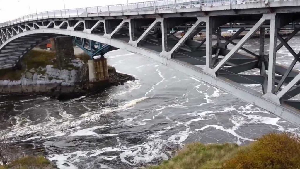 सेंटजॉन नदीवरील एका पूलाशेजारी आमची कार थांबली. इथेच हा ‘रिव्हर्सिंग फॉल्स’चा प्रकार आहे. नदीच्या काठावरील पायऱ्या उतरून आम्ही निरिक्षण स्थळी गेलो. पूलाखालून पाण्याचा प्रवाह संथ गतीने वाहत, फंडीच्या उपसागराच्या दिशेने चालला होता. माझी नजर ‘रिव्हर्सिंग फॉल्स’चा शोध घेऊ लागली, परंतु कुठेच कांही दिसेना. पाच-दहा मिनिटे सभोवतालचे निसर्गाचे रमणीय दृश्य पहाण्यात निघून गेली, एवढ्यात तो चमत्कार नजरे समोर आला, नाही घडला. नदीतून समुद्राकडे वाहणाऱ्या पाण्याला रेटत उलट्या दिशेने….. नदीच्या पात्रात दुसरा एक पाण्याचा प्रवाह येत असल्याचे दिसले नि आम्ही आश्चर्याने पहातच राहिलो. एक भला मोठा पाण्याचा प्रवाह उलट दिशेने वाहत नदीच्या पात्रात येत होता. त्यामुळे नदी पात्रातील पाणी दोन्ही बजूने दोन भागात विभागले गेले नि नदी पात्रात एक नयन मनोहारी दृश्य निर्माण झाले. नदीच्या पात्राच्या उलट दिशेने वाहणारे पाणी नि त्याच्या दोन्ही बाजूने आपल्या नित्याच्या दिशेने वाहत जाणारे पाणी… परस्पर विरुध्द दिशेने जाणारे पाण्याचे तीन प्रवाह ! तासनतास पहातच रहावे असे विलोभनिय दृश्य !