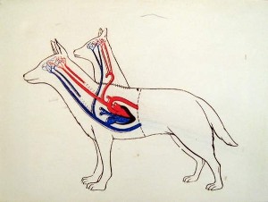 दोन मस्तके असलेल्या श्वानाचे रेखाचित्र