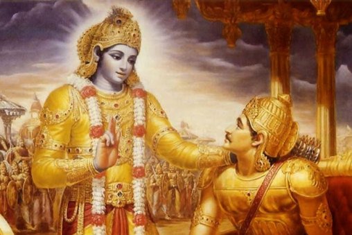 इथे सुरू होतो श्रीमद्भगवद्गीतेच्या उपनिषदातील ब्रह्मविद्यायोगशास्त्रामधील कृष्णार्जुनसंवादापैकी