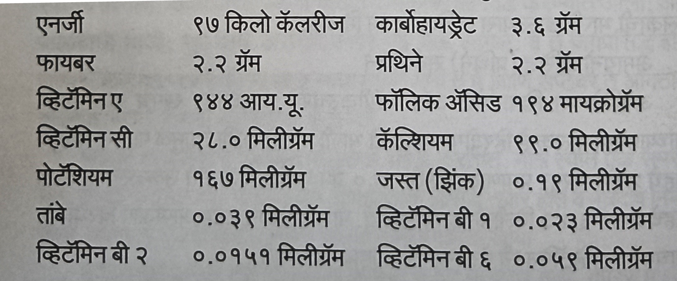 १०० ग्रॅम पालक घेतल्यास त्यात खालील गुणधर्म आढळतात.
