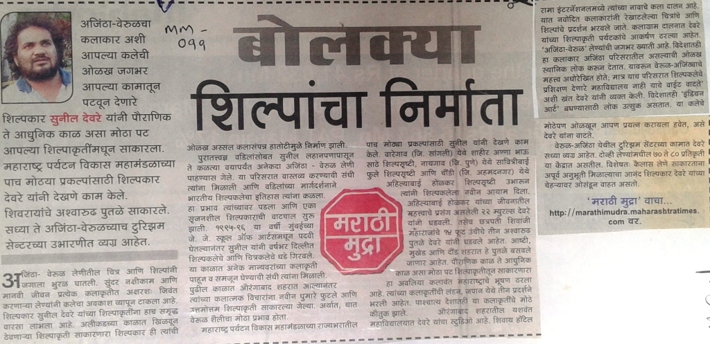 सुनील देवरे यांच्याविषयी महाराष्ट्र टाईम्सच्या म.टा. नोंद या सदरात प्रकाशित झालेला बोलक्या शिल्पांचा निर्माता हा लेख पुढील पानावर वाचा.
