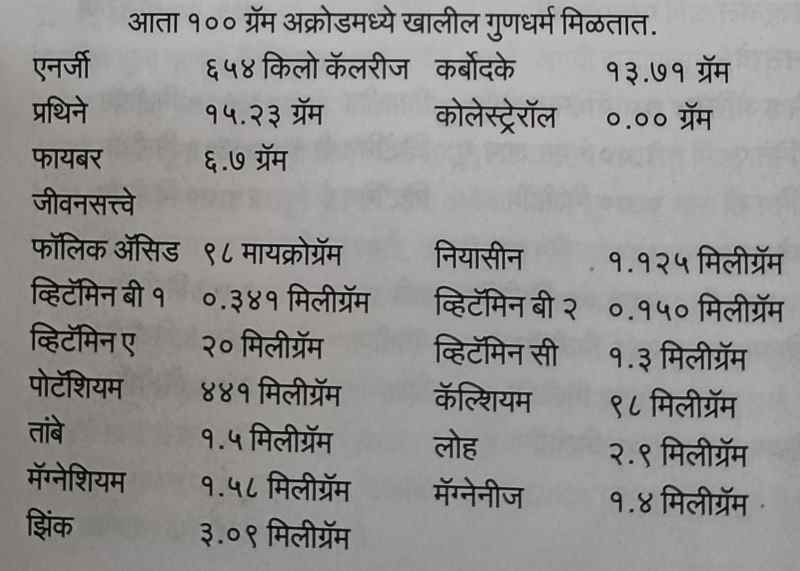 आता १०० ग्रॅम अक्रोडमध्ये खालील गुणधर्म मिळतात.